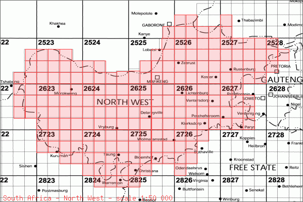 209 maps from Chief Directorate National Geo-spatial Information of South Africa: reprojected and collar-cropped for seamless mosaic. MrSid file format ( More details ) |